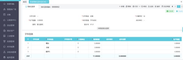 BOM清单标准化,材料成本自动归集