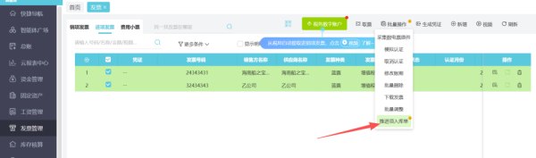 进项发票自动生成采购入库单,销项发票自动生成销售出库单