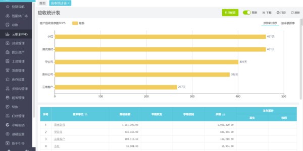 客户应收账款:每个客户的欠款、账期自动统计