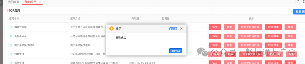 2,可以看到TOP应用下,预置了上述介绍的4个应用;找到假勤管理,点击安装;