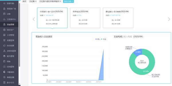 支持自动匹配银行流水与账目数据,实时核对资金流向,并智能预警异常交易。