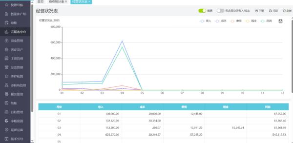 收入成本曲线实时追踪,费用结构饼图秒级解析。
