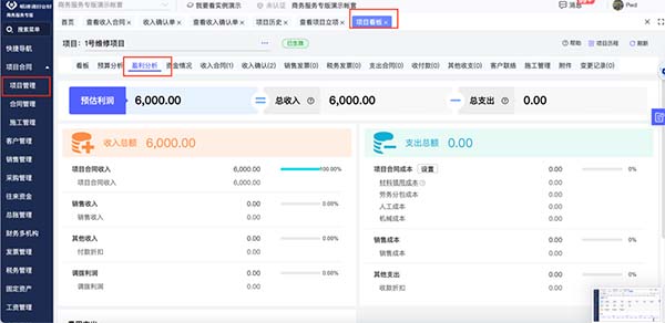 1.项目利润实时掌控