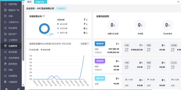 系统实时监控全量发票信息,智能识别,主动发出预警提示,助力企业及时排查问题。