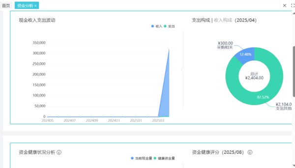 资金分析模块支持自动生成多维度资金流向报告,实时追踪收支波动趋势,智能提示预付账款及到期欠款,掌握现金流状况。