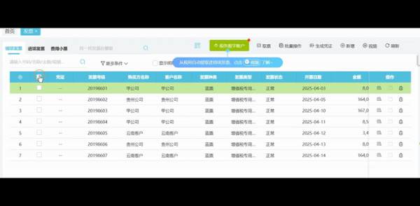 进销项一键导入:系统支持一键批量导入数百张进销项发票。